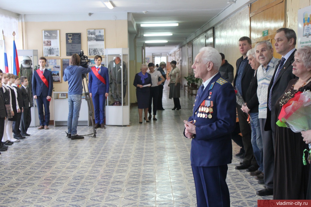 Историко-краеведческий музей имени Героя Советского Союза Е.И. Пичугина С мая 2010 года в школе работает военно-историческая экспозиция «Памяти Героев – будем достойны!», открытая накануне празднования 65-й годовщины Победы, и обновленная после капитального ремонта здания школы. В декабре 2011г. школьное сообщество средней школы № 41 обратилось к администрации г.Владимира с ходатайством о присвоении образовательному учреждению имени Героя Советского Союза Евгения Ивановича Пичугина. В начале 2012-2013 учебного года ходатайство было удовлетворено и решением Совета народных депутатов города Владимира от 22.08.2012 г., Постановлением Губернатора от 31.08.2012 г., в целях патриотического воспитания молодёжи, увековечивания памяти Героя Советского Союза Е.И. Пичугина и в соответствии с постановлением Совета Министров РСФСР от 30.09.1990 года №402, школе было присвоено имя Героя Советского Союза – Евгения Ивановича Пичугина. Открытие доски приурочено к дню гибели Героя. Е.И. Пичугин погиб в возрасте 20 лет 19 марта 1942 года, совершив подвиг. Посмертно он был удостоен звания Героя Советского Союза.