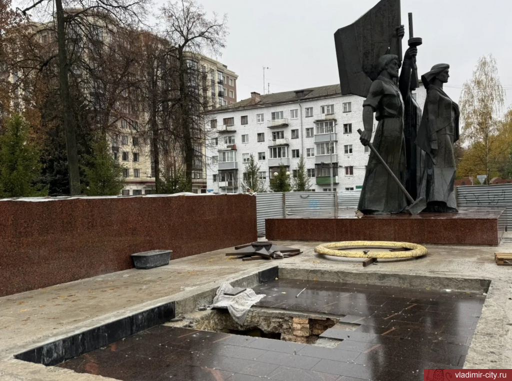 Общественники проверили ход работ по капитальному ремонту памятника на площади Победы