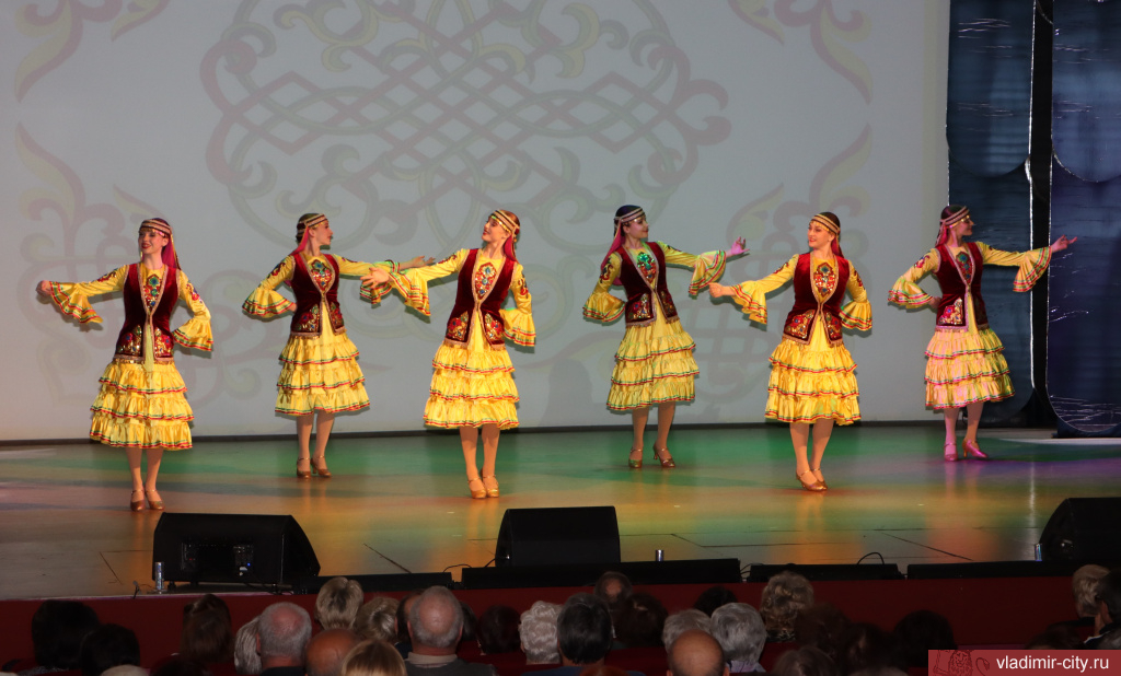 Продолжилось мероприятие концертом представителей народных коллективов, проживающих в областной столице. Номера «Ой, ты Россия», «Сказ о граде Владимире», «Ойся ты ойся, ты меня не бойся» исполнили музыкальный театр «Разгуляй», фольклорный ансамбль «Муравушка», муниципальный ансамбль «Вишенка». Башкирский, татарский, кавказский, азербайджанский танцы представил камерный балет «Гестус». Также выступил ансамбль национального армянского танца «Арарат» и ученики школы барабанов «Арцах». Завершилась программа песней «Катюша» на разных языках, исполнили которую народный коллектив «Хор ветеранов Войны, Труда и Вооруженных сил им. Погосова», театр песни «Амега» и представители национальных общественных организаций города Владимира.